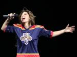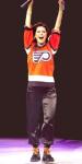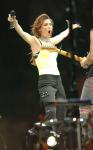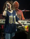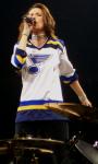 I love all those pics, but the one with the Blues jersey the most probably. Only because, only because! :) If memory serves, she has her back to me when this pic was taken. Although the concert was in "the round." She's off around the side a litle bit because I was facing the main area of the stage and was looking JD (Blair, the drummer) in the eye. You can see a cymbal and a tom at the bottom of the pic. What a great show!!!