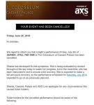 We regret to inform you that tonight’s performance (Friday, July 25) of SHANIA: STILL THE ONE at The Colosseum has been cancelled.