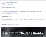 Translation: Hello, guys! See how was the backstage Paula's date with Shania Twain in the recording of the new song "You're Still The One"! Tomorrow you can see the full clip here! #EncontroPaulaeShania