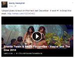 The song is at #30, with four full days on the Brazilian iTunes chart. I don't know how well that is for music standards in Brazil. Since it is an overall chart and includes artists like Ariana Grande and Katy Perry, who are currently dominating worldwide (which used to be Shania), I'd say this is a pretty good spot for the song. I will login to the Brazilian iTunes store throughout the week to keep everyone updated on the status on iTunes.