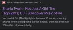 Not Just A Girl: The Highlights is now available in New Zealand. For those outside NZ you can listen to the first 1:30 of Shania's new song "Not Just A Girl".