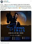 ONE WEEK UNTIL TOUR!! 😱🤠 And that also means one week until you find out what's on the Queen Of Me setlist.... I can't WAIT to see your reactions... but until then, show me your dream setlist, I want to see if any of you come close to the real one 😜live.umusic.com/shaniatwain-setlist