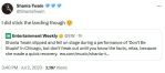 What’s most telling about the “fans” who post here is that there’s been almost as much complaining about her appearance as there’s been about her voice. Shania has always pushed the boundaries. Wearing daring outfits and wigs is nothing new for Shania. What’s at display here is ageism. People just have a problem with it now because of her age. Get a grip. If this version of Shania is so disappointing to you, why not move on? Just because one is a longtime fan doesn’t mean you have to remain a fan.